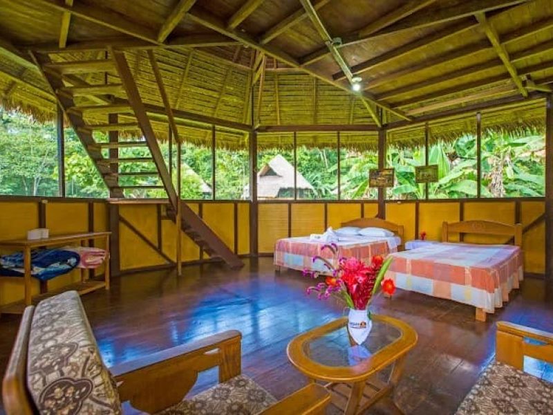 Despues llegamos al lodge esta ubicado orilla del lago .Acomodación en sus respectivas habitaciones privadas . Disfrutaremos de un almuerzo típico de la zona . Luego nos diriguimos al canopy